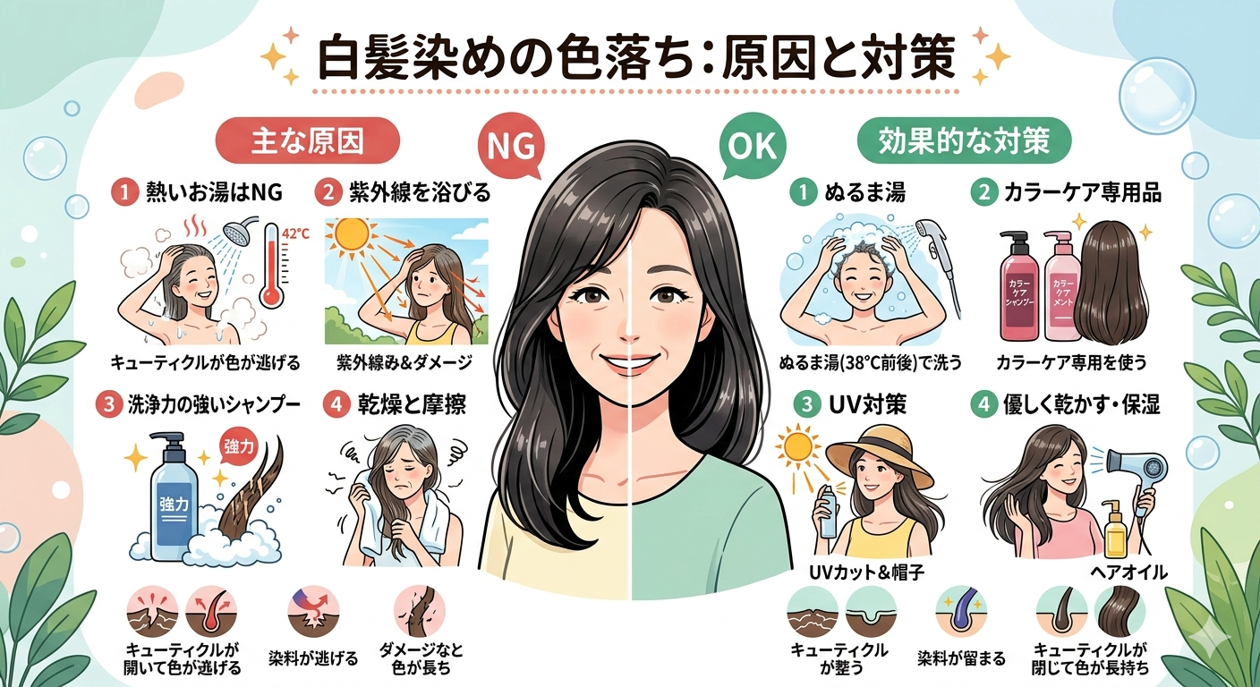 白髪染めの色落ちが気になる原因と対策